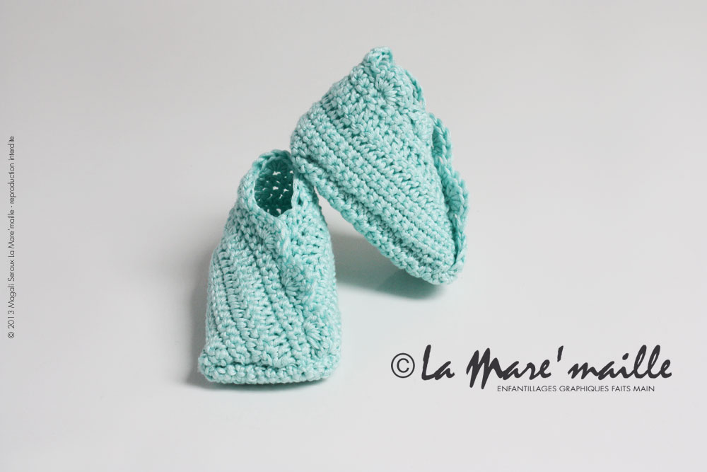 Find it on the e-shop www.lamaremaille-shop.com/chaussons-fermes/16-chaussons-bebe-crochet-coton-bleu-mint.html