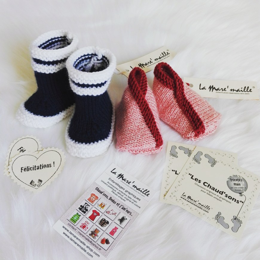Si vous souhaitez, vous aussi, offrir à bébé des chaussons La Mare’maille®, rendez-vous sur la boutique en ligne en cliquant sur chaussons bébé laine mérinos ou sur chaussons bébé façon bottes de pluie hommage à Aigle
