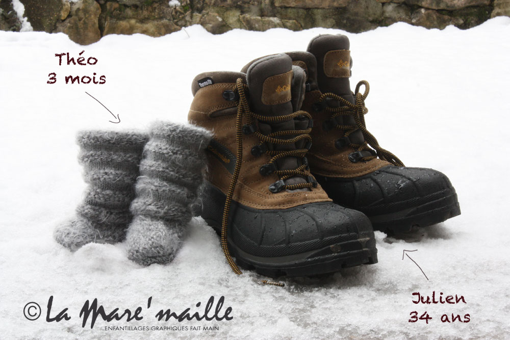 Ce temps maussade et frais donne envie d’envelopper bébé dans des chaussons qui remontent bien hauts, tout en gardant notre bonne humeur. Si en plus on peut faire un pied de nez à la pluie, c’est parfait. Les chaussons style bottes de pluie hommage à Aigle sont tout indiqués. Ce mois de mars s’annonce chaotique : pluie, giboulées, neige, froid et coups de vent… Glagla. Ca promet. En vous écrivant, j’entends la pluie s’abattre sur ma fenêtre de toit, et je me dis que ces petites mignonnes bottes sont vraiment de circonstance. Du coup, on se fait plaisir en offrant à bébé un accessoire tendance et décalé.
