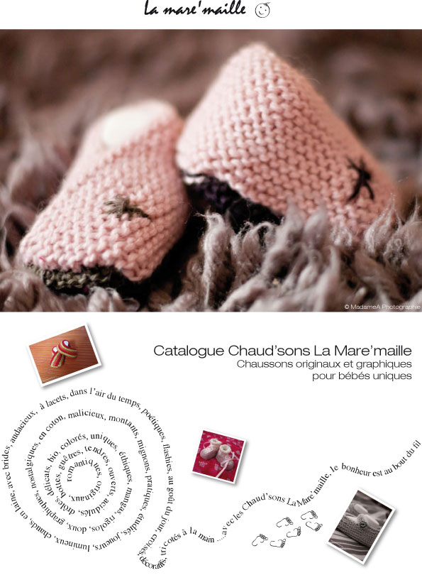 (Quand) Le beau temps arrive(ra), certains bébé La Mare’maille s(er)ont prêts… Grâce à ces chaussons bébé en coton BIO. Depuis quelques jours, je sais que c’est le printemps, non en regardant par la fenêtre, mais en regardant le détail des chaussons bébé maille vendus. Il semblerait que vous ayez confiance dans les beaux jours, qui n’en finissent pourtant pas de se faire attendre. La star actuelle des ventes de chaussons bébé La Mare’maille est …. la série de chaussons en coton BIO ! Un modèle idéal pour les pieds de bébé au printemps et en été. La preuve en est que vous êtes nombreuses à en avoir fait l’acquisition. Je vous en remercie (au passage) Sorti l’année dernière, il est peut être grand temps de vous présenter ce modèle (et oui, je suis fidèle à ma réputation de bloggeuse à la traine. Que voulez-vous, on ne peut pas être en avance sur tout, et mon talon d’Achille c’est la communication sur le blog. Et pourtant, je me soigne, je vous jure ! Mais sans le don d’ubiquité, c’est compliqué). Ces chaussons bébé ouverts ont une forme dite « babies », fermés par une boutonnière et un bouton de nacre. Tombée amoureuse de ce coton BIO (extra doux) si agréable à tricoter, j’ai tenté d’en faire pour tous les goûts. Ils sont disponibles en modèle rayé ou uni, de couleur vive ou pastel, avec des associations de couleurs audacieuses ou classiques. Ils sont disponibles de la taille 0 à 12 mois, en coffret souvenir de naissance prêts à offrir ou en présentation simple. Tricotés main en coton bio certifié, ils sont à la fois doux, légers et aérés. C’est sûr ils ont tout pour plaire. Liste des points de vente ici