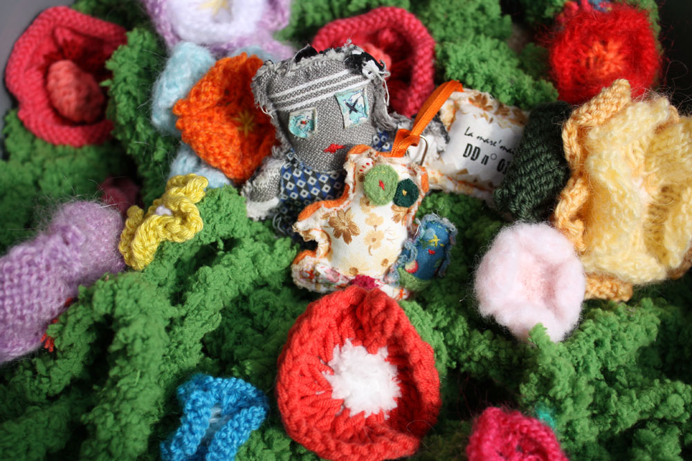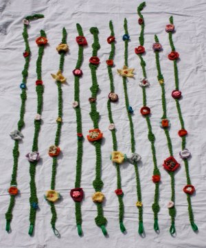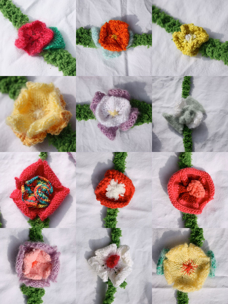 Ah mais j’ai oublié de vous parler du suivi du projet « lianes ». Celui pour une nouvelle boutique normande (Villers-sur-Mer exactement). Eh bien après de longues heures de travail, j’ai fini (dans les temps) les non moins longues lianes fleuries tricotées.